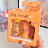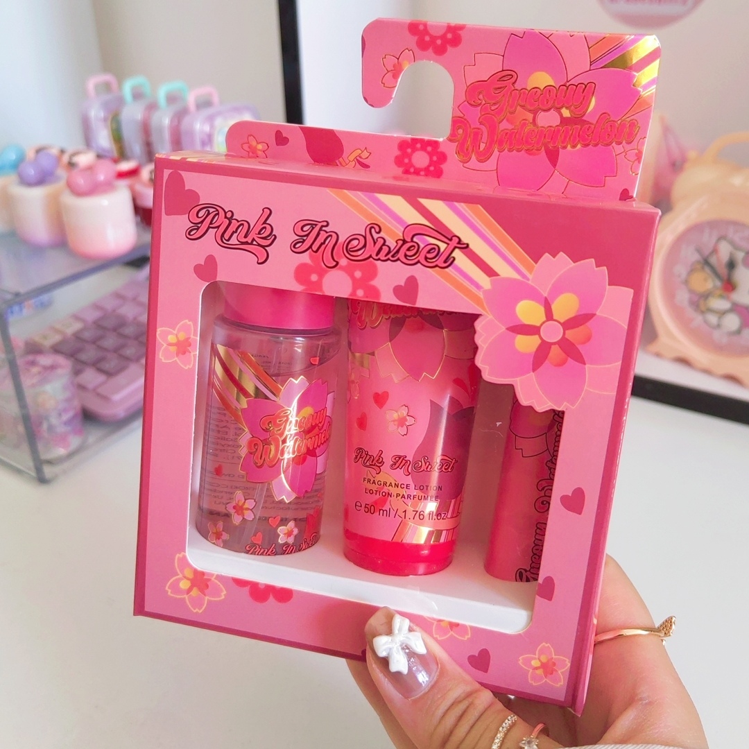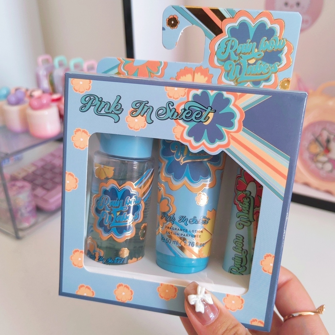 پک سه عددی شامل محصولات زیبایی و مراقبت از پوست است که معمولاً با طراحی جذاب و رنگهای شاداب ارائه میشود. این پک ممکن است شامل مواردی مانند عطر قلمی، بادی میست و لوسیون بدن باشد. محصولات این پک معمولاً برای تغذیه و مراقبت از یا پوست طراحی شدهاند و به دلیل بستهبندی زیبا و کارآمد، گزینه مناسبی برای هدیه یا استفاده شخصی به شمار میروند.