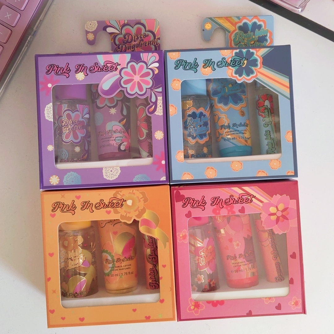 • هر پک شامل یک لوسیون بدن یک بادی اسپلش و یک عطر قلمی