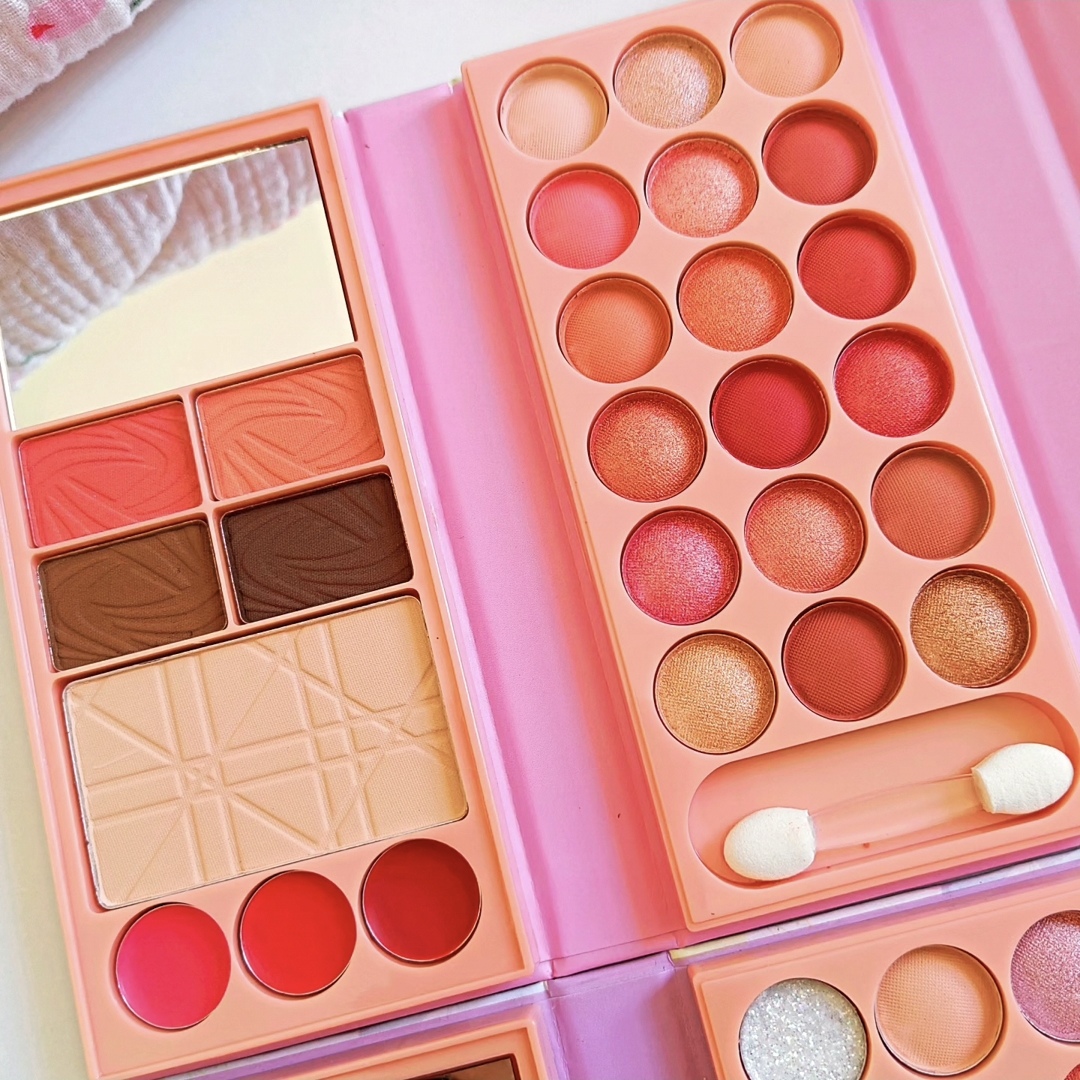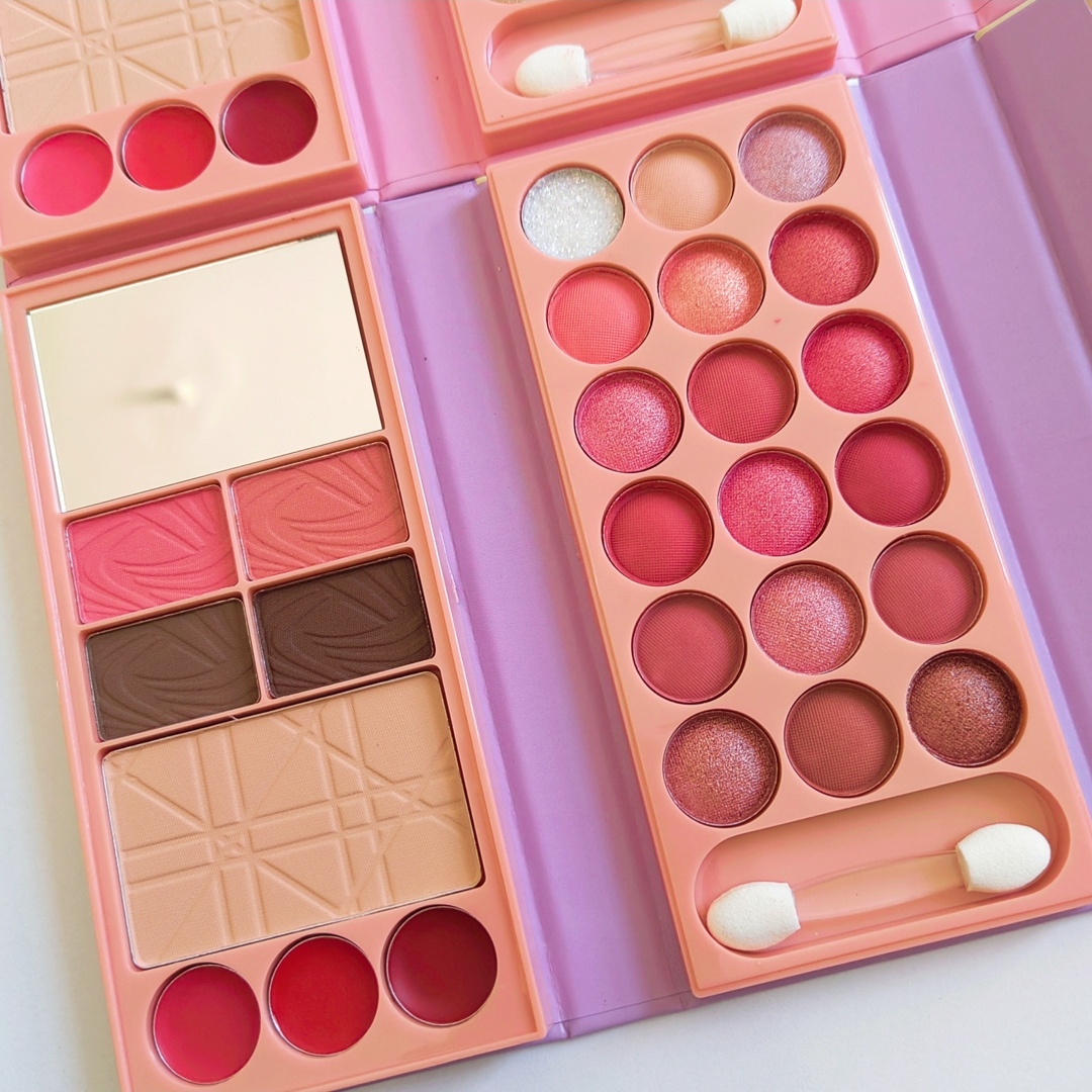 چون هم انواع سایه مات داره هم انواع سایه شاین هم گیلیتر هم رژگونه هم هایلایتر هم کانتور هم رژ لب... تازه آینه و براش هم داره🤭💖