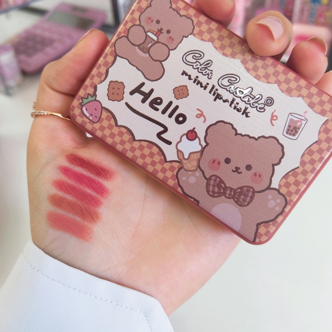 جدید ترین پک رژ جامد کالر کستل🧸 بوی شکلات میده🍫 پیگمنت خیلی عالی داره هر دختری دنبال یکی از این پالت هاست همیشه🎀 رنگ هاش همه پرطرفدار و دم دستی هست✨ مطمئنم عاشق پکیجنگ نازش میشین و همیشه با خودتون همه جا میبرینش
