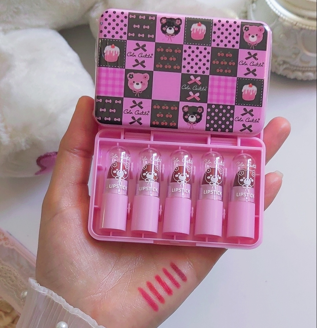 این پک فانتزی از برند کالر کستل 5تا رژ با رنگ های صورتی و نود دارد بافت رژ به شدت نرم است و کیفیت بالایی دارد این پک به شدت اقتصادی هست و برای هدیه دادن هم انتخاب فانتزی و بسیار شیکی هست