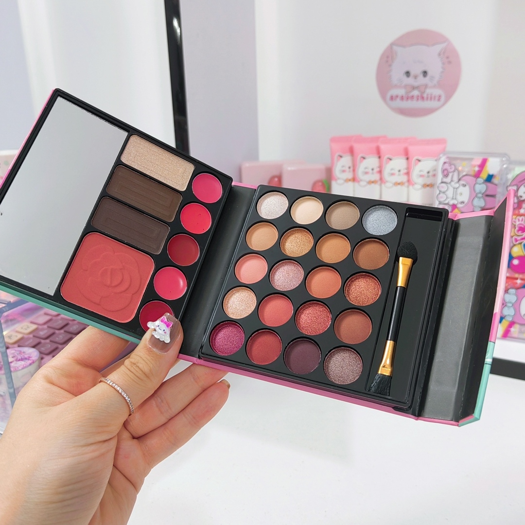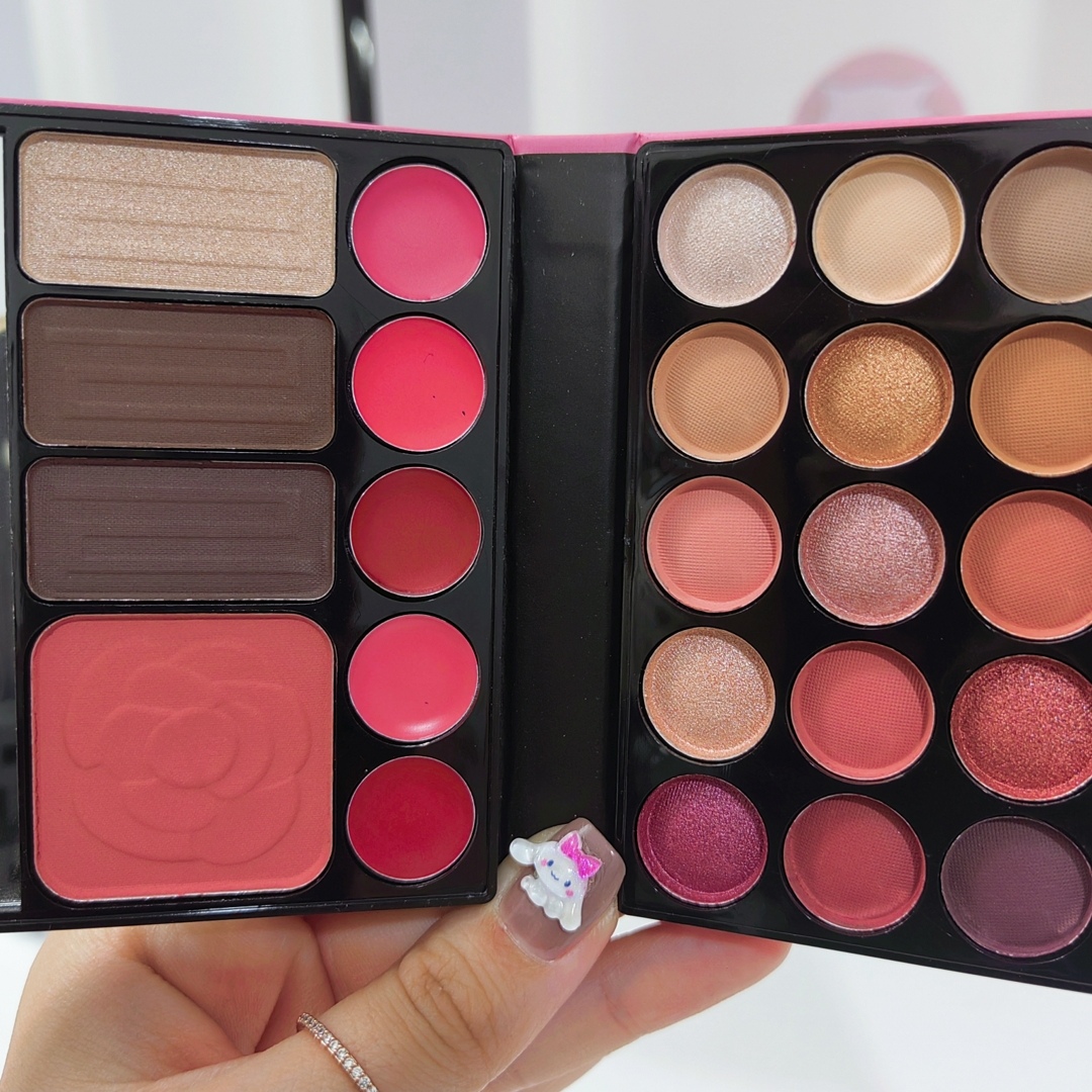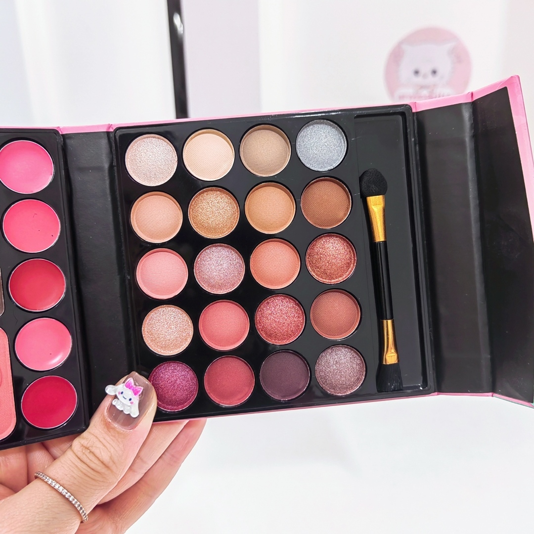 مجموعه کامل شامل رژگونه، هایلایتر، رژلب، سایه ابرو و سایه چشم