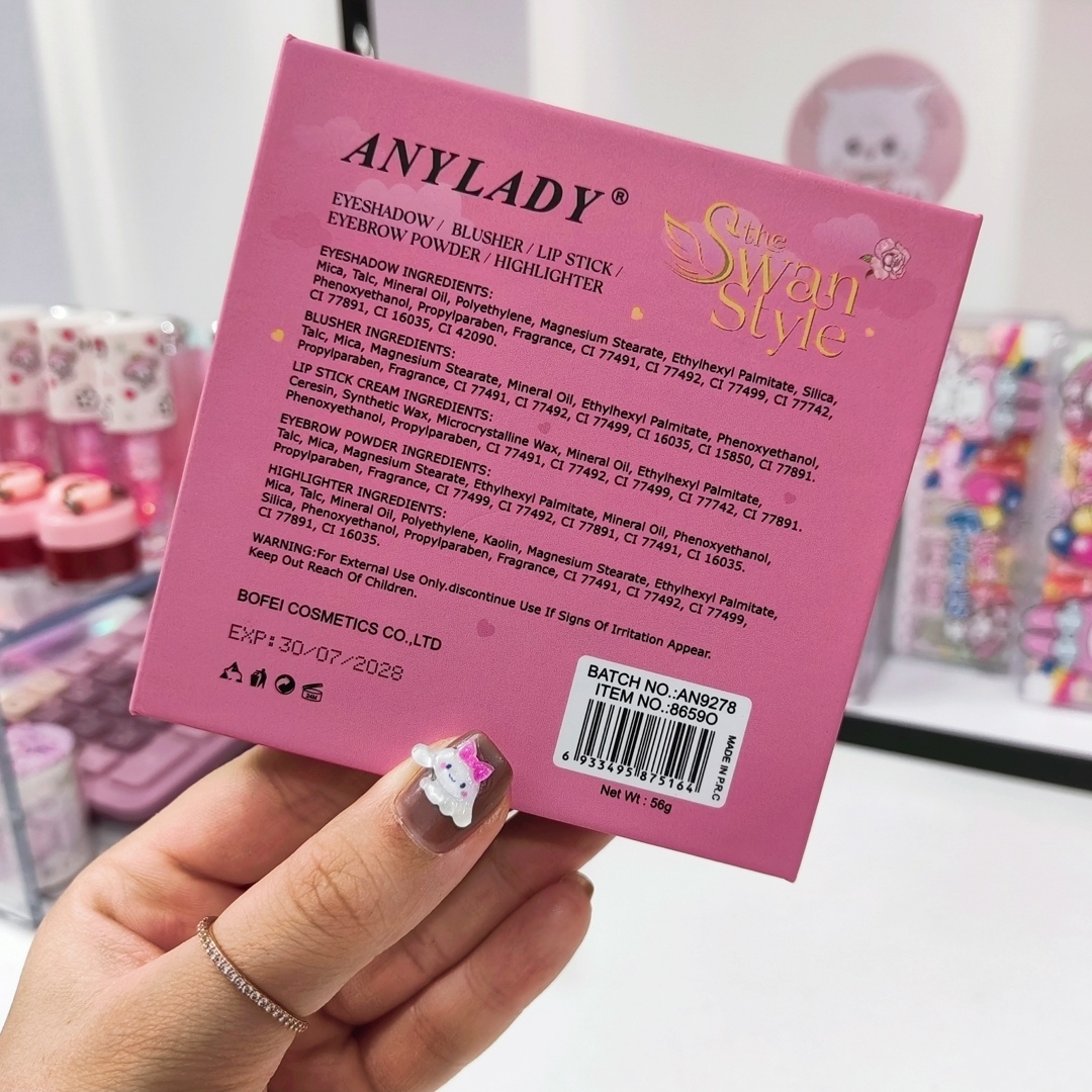 پالت آرایشی انی لیدی مدل قو آبی، شامل سایه چشم و ابرو، رژگونه، رژلب و هایلایتر است و به علت داشتن چند لوازم آرایش در کنار هم علاوه بر قیمت از نظر حمل آسان بسیار محبوب است. این پالت دارای چند رژ لب و رژگونه پرکاربرد، چند سایه مات و شاینی و هایلایتر های جذاب است. ماندگاری و کیفیت محصولات موجود در این پالت بسیار بالا بوده و بافتی سبک و یکدست را بر روی پوست شما ایجاد خواهد کرد. این پالت شامل رنگ های شاد و شاینی است و مناسب آرایش های روز و شب است و شما را از هر پالت دیگری بی نیاز میکند